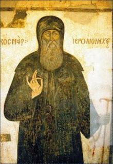 όταν βρισκόταν σε κελί του Αγίου Ορους. Κατά την παράδοση, ο Αρχάγγελος έψαλε