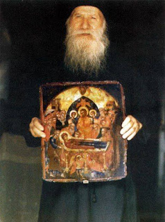 Παναγίας στο πρόσωπο. Τότε από την εικόνα άρχισε να τρέχει αίμα, ενώ ο μοναχός