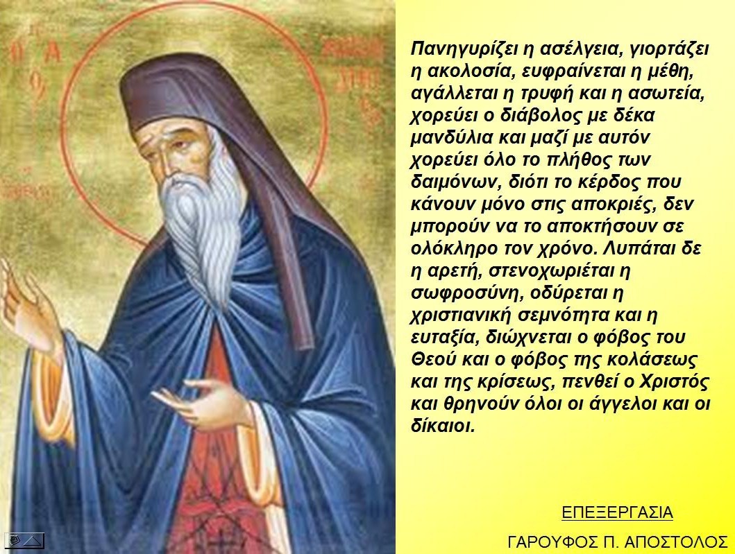 ὁλόκληρη σχεδὸν τὴν πατρίδα μας, ὀργανώνονται καρναβαλικὲς-νεοειδωλολατρικὲς ἐκδηλώσεις.